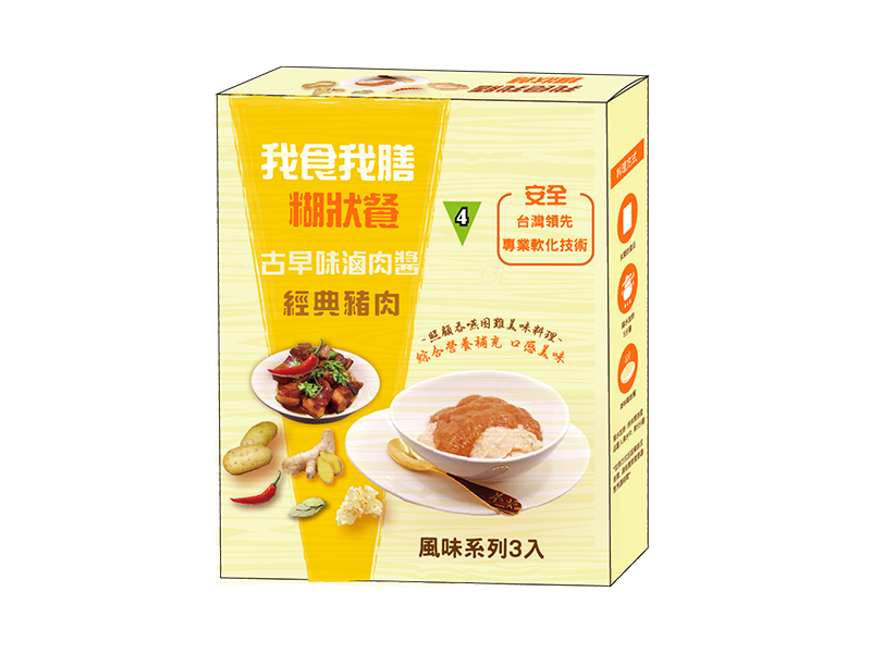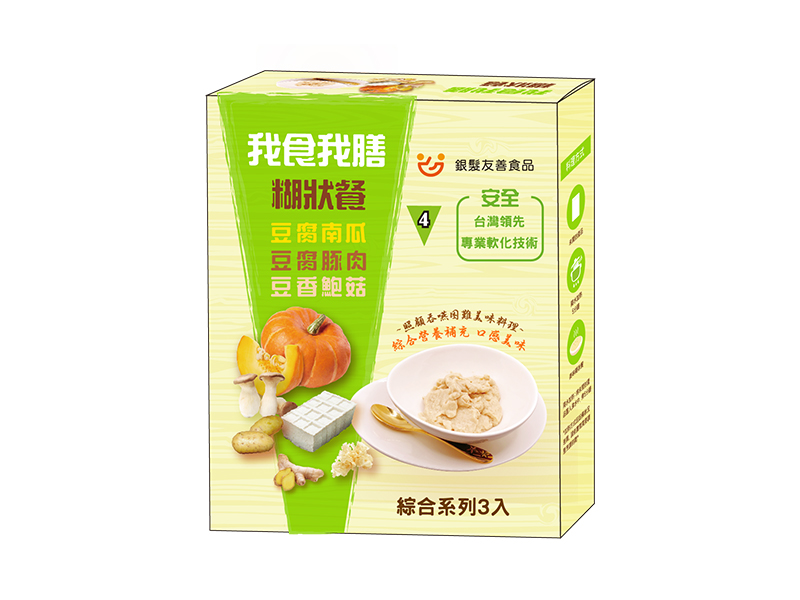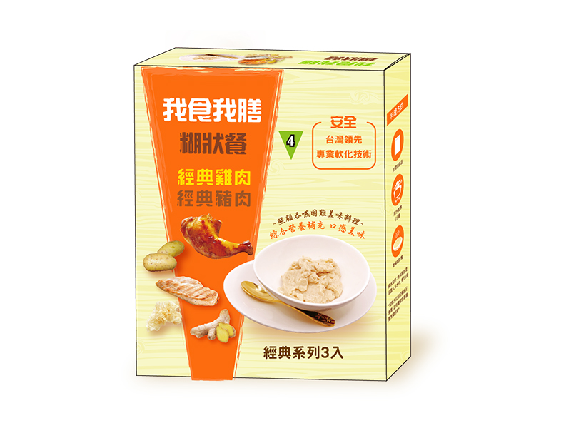 我食我膳是由營養師團隊提供專業膳食指導,依據國際吞嚥障礙飲食標準IDDSI,專為咀嚼吞嚥困難者及醫療專業照護者所設計研發,符合亞洲人口味的介護食。細緻柔滑的質感適合不同身體狀況的長者及患者食用。